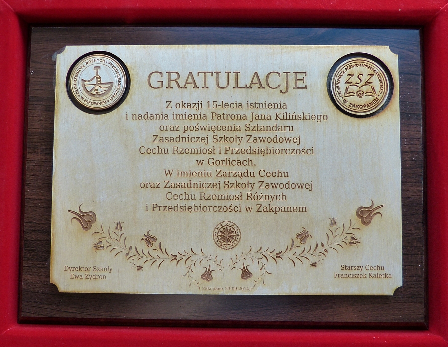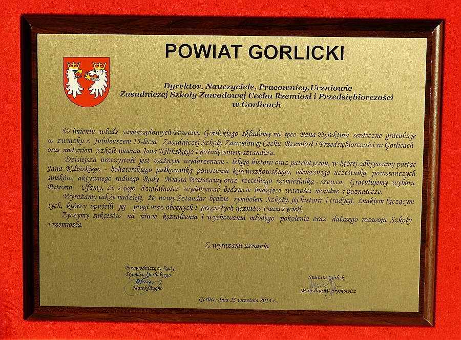 J. E. Ks. Biskupa Jana Wątrobę, towarzyszących J. E. księży: ks. Stanisława Koguta – wicedziekana Dekanatu Gorlickiego, ks. Jerzego Gondka – dyrektora Caritas Gorlice, ks. Marka Urbana – proboszcza glinickiego, Jerzego Bartnika – Prezesa Związku Rzemiosła Polskiego w Warszawie, Pawła Śliwę – radnego Sejmiku Województwa Małopolskiego, sędziego Trybunału Stanu, Monikę Przybyło – wizytator Kuratorium Oświaty, Mirosława Wędrychowicza - Starostę Gorlickiego, Marka Bugno – Przewodniczącego Rady Powiatu Gorlickiego, Zofię Kamińską – Przewodniczącą Komisji Edukacji RPG, Tadeusza Mikruta – Naczelnika Wydziału Edukacji, Kultury, Turystyki i Sportu Starostwa Powiatowego, Witolda Kochana – Burmistrza Miasta Gorlice, Tadeusza Szewczyka – prezesa Izby Rzemiosła i Przedsiębiorczości w Nowym Sączu oraz Czesława Krupę – dyrektora Izby, Starszyznę Cechową z Nowego Sącza, Limanowej, Zakopanego i Nowego Targu, dyrektorów szkół cechowych z Krynicy, Nowego Sącza, Zakopanego, Limanowej, Nowego Targu, Renatę Stępień – dyrektor ZST im. W. Pola, Katarzynę Brzozowską-Chochołek – Komendat OHP w Gorlicach, Zarząd CR i P w Gorlicach z Tadeuszem Gargasem Starszym Cechu, mistrzów szkolących, nauczycieli, rodziców, pracowników oraz młodzież, której ta uroczystość była dedykowana.