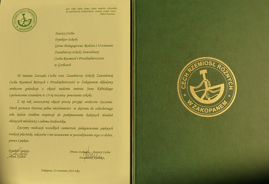 W dalszym ciągu uroczystości wystąpili zaproszeni goście, składając na ręce Starszego Cechu i dyrektora szkoły życzenia i gratulacje.