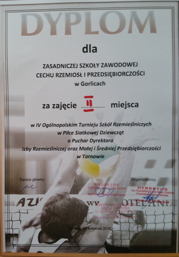 W dniu 28 kwietnia odbył się w Tarnowie IV Ogólnopolski Turniej Uczniów Szkół Rzemieślniczych w Piłce Siatkowej Dziewcząt i Chłopców o Puchar Dyrektora Izby Rzemieślniczej w Tarnowie. W turnieju wystartowało 5 drużyn chłopców i 6 drużyn dziewcząt. Reprezenowali oni szkoły z Krakowa, Zakopanego, Pilzna, Nowego Sącza, Gorlic i naturalnie z Tarnowa.