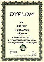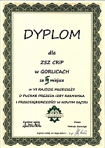 28 maja grupa uczniów naszej szkoły wzięła udział w XVII Rajdzie im. św. Jana Pawła II szlakami Beskidu Niskiego szkół ponadgimnazjalnych powiatu gorlickiego. Młodzież ZSZ CR i P pod opieką mgr Jerzego Rubicza szła trasą: Gorlice - Wapienne. Dominika Rówińska z klasy III zajęła I miejsce w konkursie wiedzy o życiu św. Jana Pawła II i w konkursie wiedzy turystycznej o Beskidzie Niskim a Barbara Mendrela rownież z III klasy miejsce IV w konkursie wiedzy turystycznej o Beskidzie Niskim. |