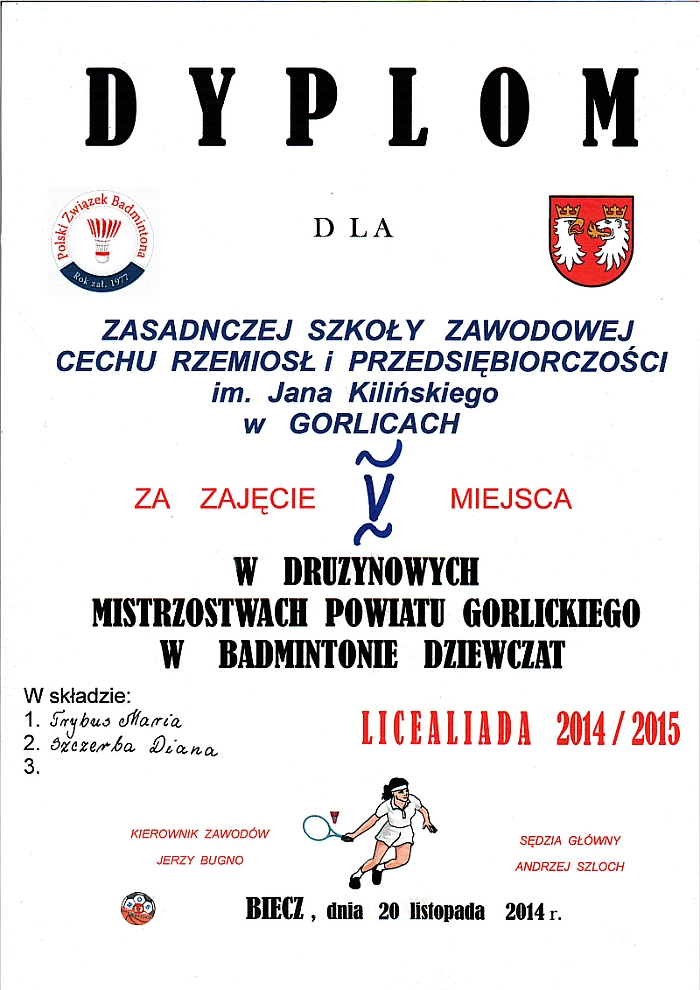 wzięła udział w silnie obsadzonych Powiatowych Drużynowych Zawodach w Badmintonie, które odbyły się w Bieczu.