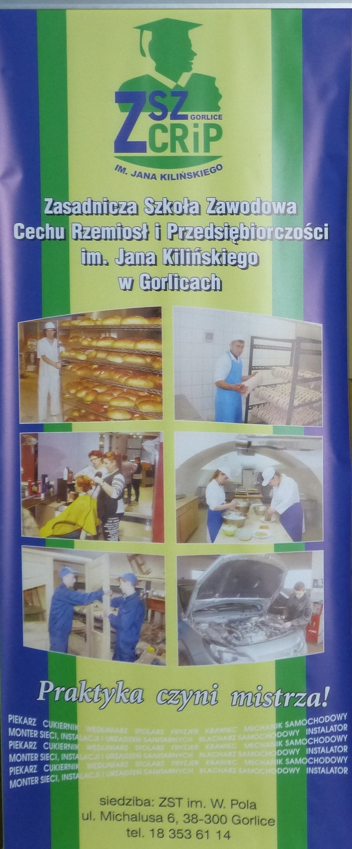 Obchody jubileuszowe w dniu 23 września 2014 roku zbiegły się z nadaniem szkole imienia Jana Kilińskiego i poświęceniem jej sztandaru. Uroczystość rozpoczęła się mszą świętą w Kościele p.w. Matki Boskiej Nieustającej Pomocy w Gorlicach-Gliniku. Po zakończeniu mszy świętej przy dźwiękach orkiestry prowadzonej przez tańczące mażoretki odbył się uroczysty przemarsz pocztów sztandarowych, zaproszonych gości, nauczycieli, mistrzów szkolących i uczniów do szkoły, gdzie odbyła się dalsza część uroczystości. Więcej Fotorelacja p. W. Gargas Fotorelacja kol. R. Warzechy |