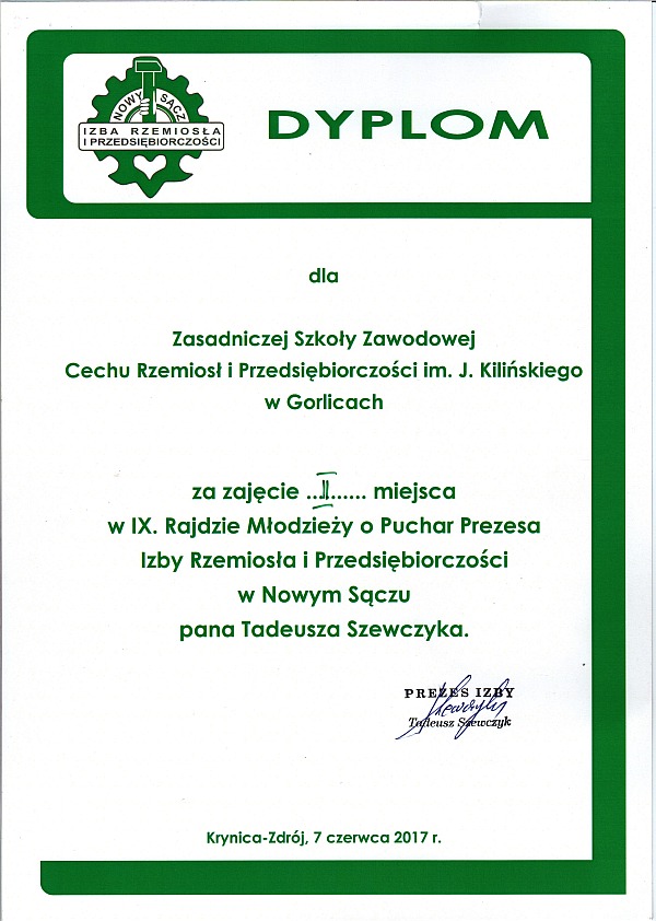 Uczniowie naszej szkoły wzięli udział w dniu 7 czerwca 2017 r. w IX Rajdzie Młodzieży o Puchar Prezesa Izby Rzemiosła i Przedsiębiorczości w Nowym Sączu, który odbył się w Krynicy na trasie ul. Szkolna – Krzyżowa - Przełęcz Krzyżowa - Bukówki - Jaworzynka – Kopciowa (ok. 8,5 km/3 godz.). Więcej