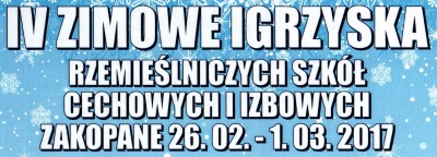 W dniach 26.02. do 01.03.2017 r. odbyły się IV Zimowe Igrzyska Rzemieślniczych Szkół Cechowych i Izbowych w Zakopanem zorganizowane przez Zasadniczą Szkołę Zawodową Cechu Rzemiosł Różnych i Przedsiębiorczości wraz z Cechem w Zakopanem. Więcej Dzień I - łyżwy Dzień I - biegi Dzień II - slalom Dzień III - slalom |